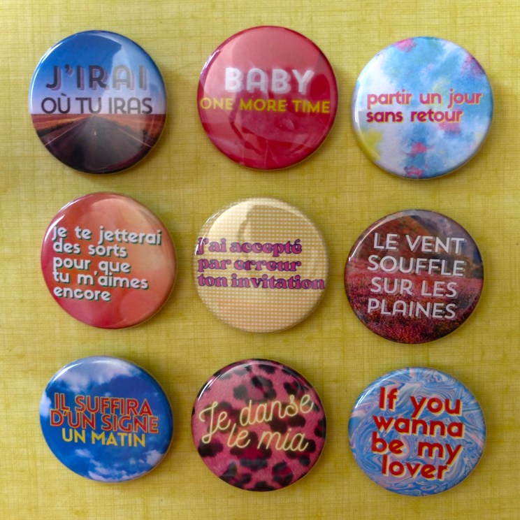 Chansons Badges reproductibles et disponibles en format aimant créés dans mon atelier à la main Partager : Partager sur X(ouvre dans une nouvelle fenêtre) X Partager sur Facebook(ouvre dans une nouvelle fenêtre) Facebook J’aime chargement…