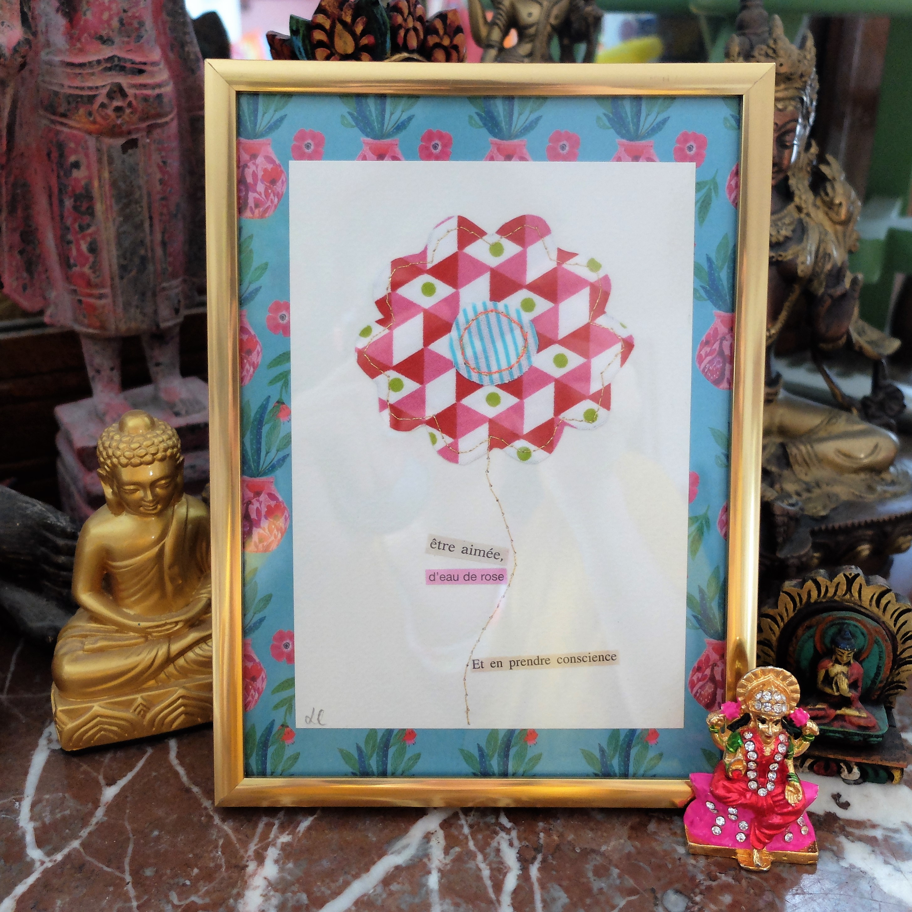 Collages, illustrations, poèmes et couture sur papier