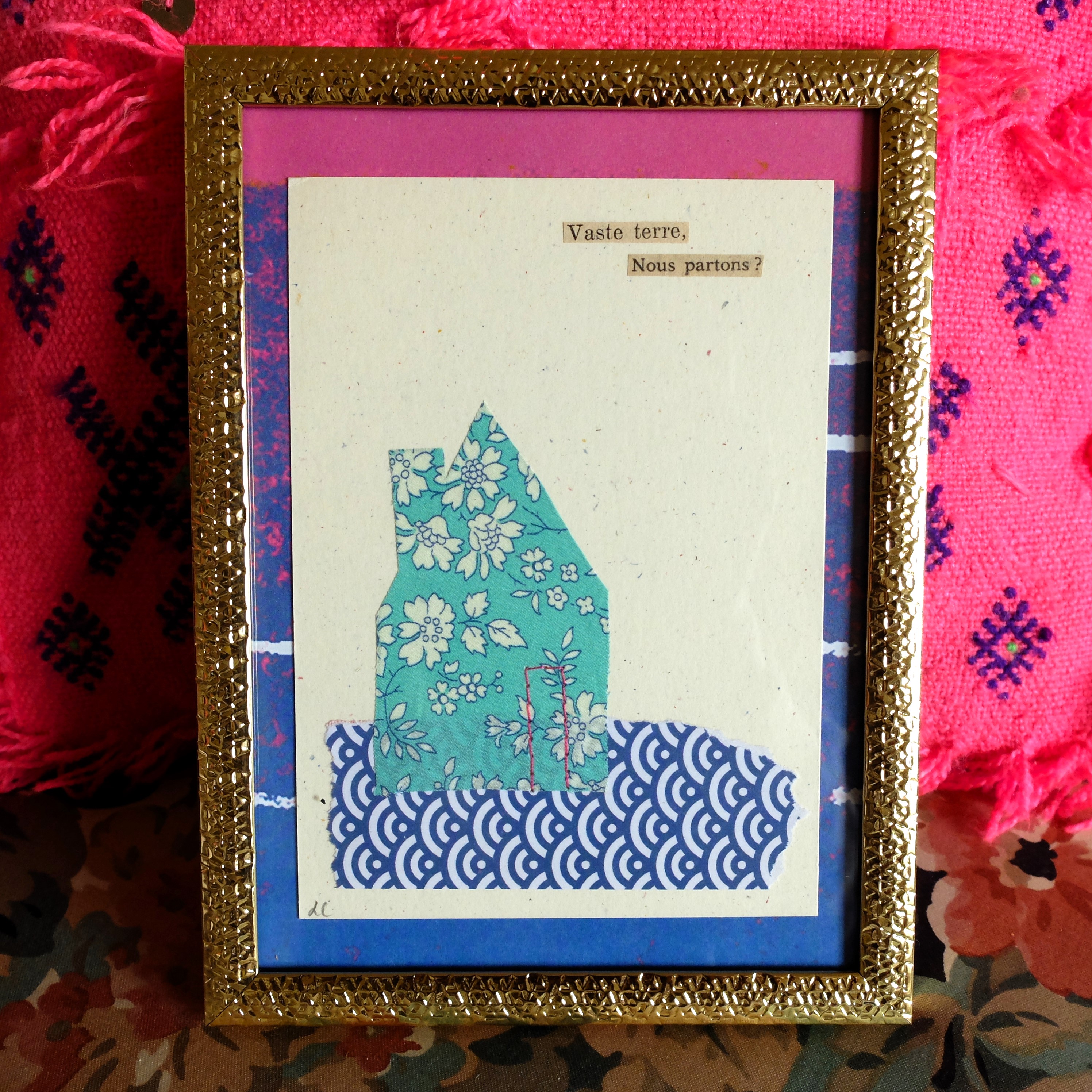 Collages, illustrations, poèmes et couture sur papier
