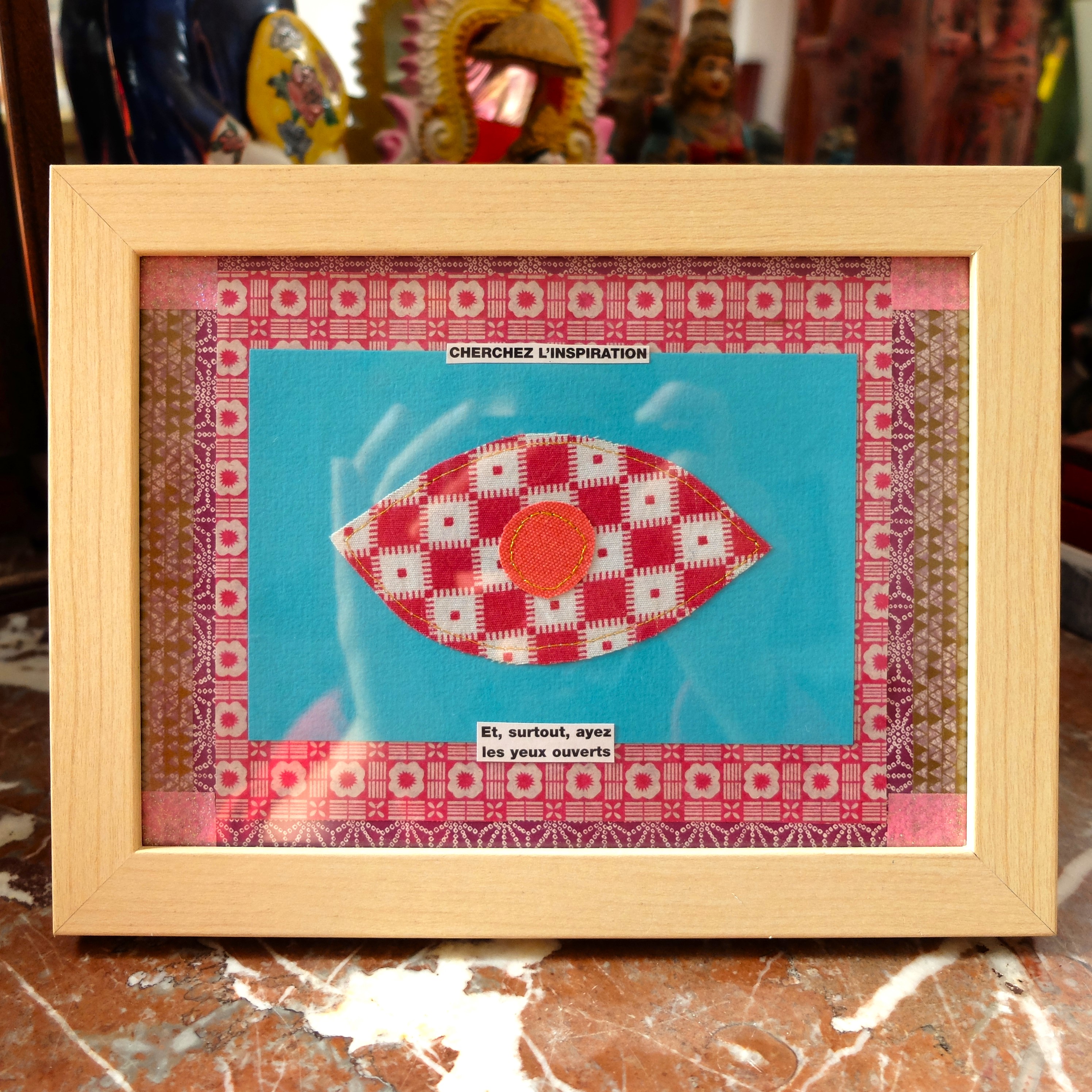 Collages, illustrations, poèmes et couture sur papier