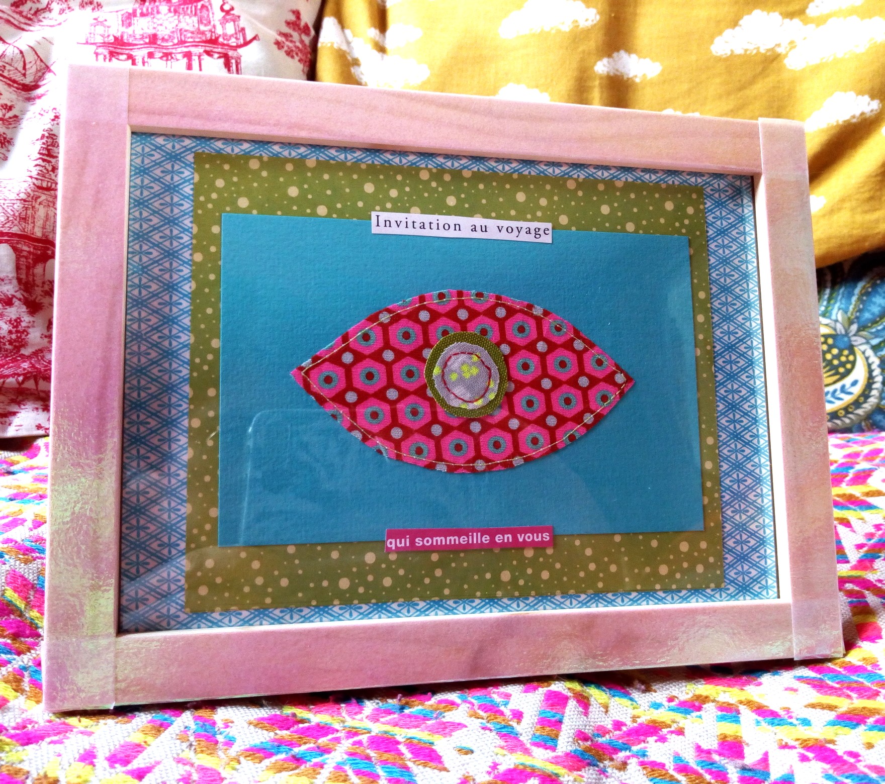 Collages, illustrations, poèmes et couture sur papier
