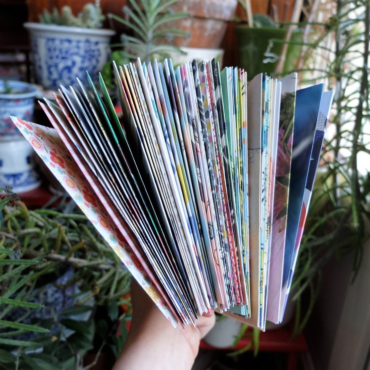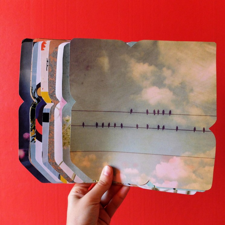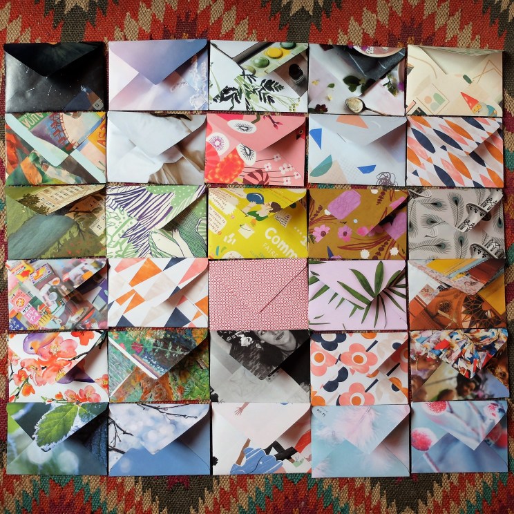 Choisissez l’enveloppe qui vous plaît le plus ! Chaque enveloppe est unique car réalisée à la main dans des pages de magazines ou de papier récupéré.