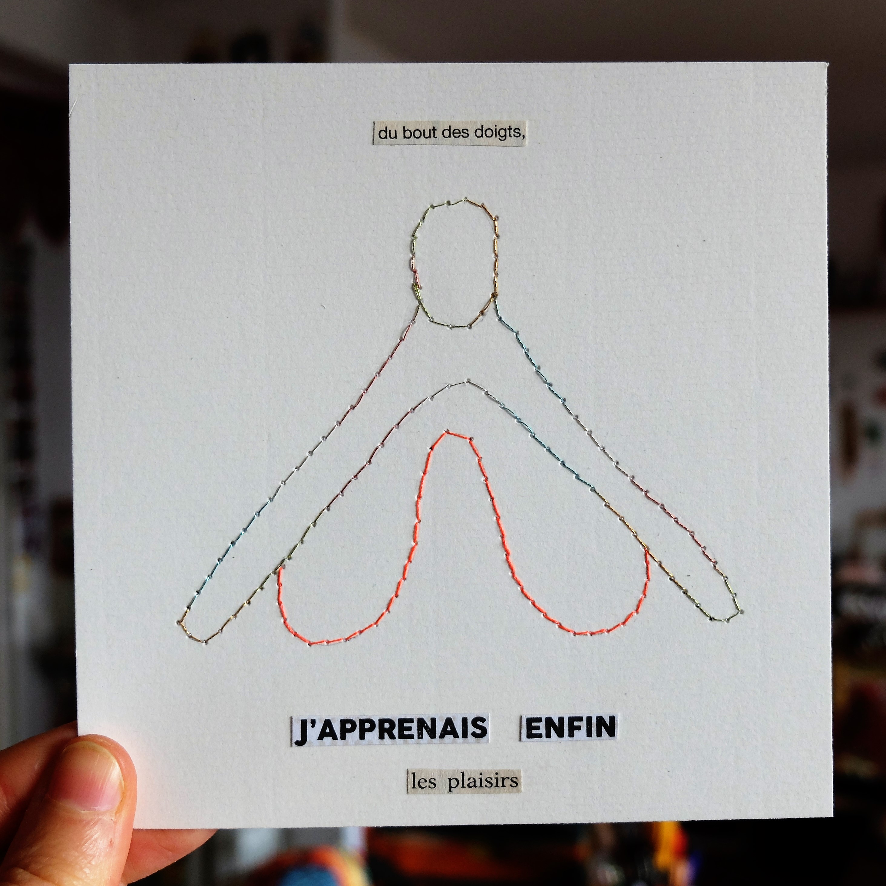 Collages, illustrations, poèmes et couture sur papier